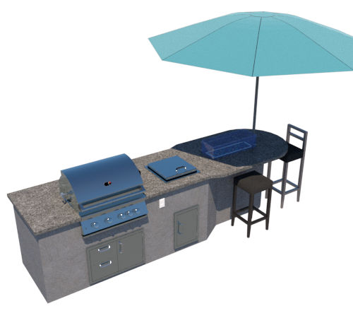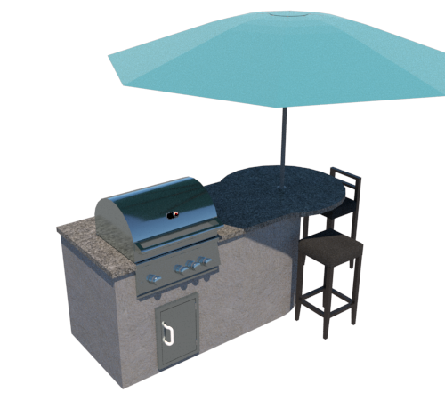 6′ by 5′ unfinished L-shaped outdoor kitchen.