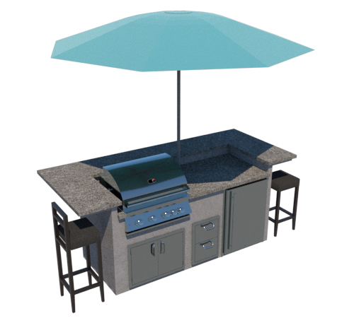 A 6′ straight, unfinished island with stainless steel brackets on the left, rear, and right sides for a counter-height bar.